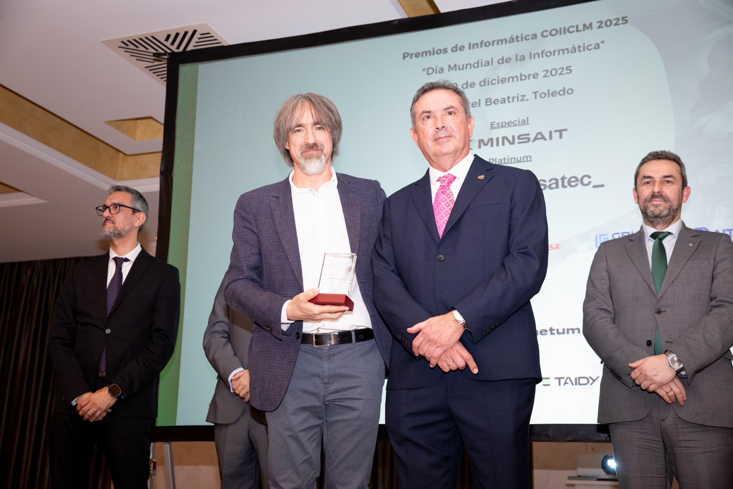 El Colegio Oficial de Ingeniería Informática de Castilla-La Mancha celebró el martes 9 de diciembre los XII Premios de Informática de Castilla-La Mancha, un evento que coincidió con la conmemoración del Día Mundial de la Informática y que reunió a los actores clave del ámbito tecnológico, empresarial, social y económico de la región.
